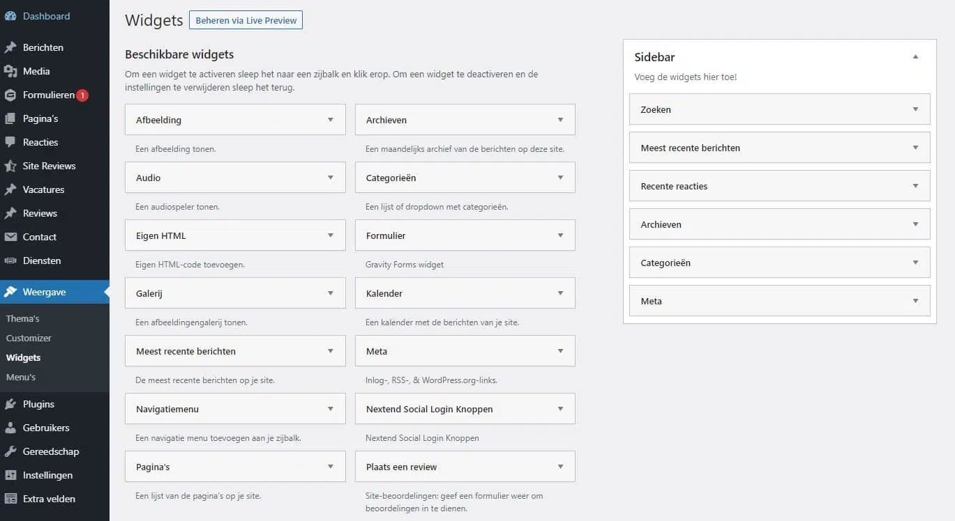 There are many possibilities when it comes to Widgets. You can add these in different ways and different places. WordPress itself already offers a number of useful widgets. You can easily add this in the indicated widget areas. These widgets include: videos, audios, recent posts, a search box, etc. So first check whether there are widgets here that you would like to use.